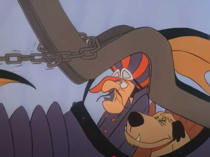 Cette vidéo est un extrait de l'épisode 34 du dessin animé Les Fous du volant (1968), créé par le studio d'animation américain Hanna-Barbera. Il met en scène 11 pilotes excentriques dans une course inspirée du film The Great Race (1965). Parmi eux figurent les antihéros Satanas et son chien Diabolo, un croisé Airedale Terrier, Chien de Saint-Hubert et chien d’arrêt. Les deux compères, tricheurs attachants, deviennent si populaires qu’ils inspirent un spin-off en 1969 et apparaissent dans deux reboots du dessin animé.