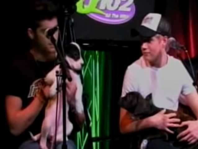 Petite surprise pour les One Direction durant un entretien pour une radio, il leur a été demandé de chanter en compagnie d'invités inhabituels : de jeunes chiens. Si l'un d'entre eux ne se montrera pas aussi docile qu'espéré, les autres resteront sagement sur les genoux de deux des jeunes hommes pendant leur prestation.