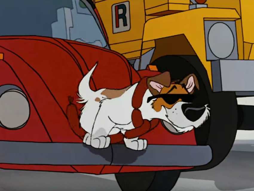 Après être parvenu à subtiliser les saucisses à un marchand, Roublard, un chien errant, ne partage pas son butin avec Oliver, son complice du jour. Préférant se pavaner, les saucisses autour du cou, il en profite pour chanter pendant qu'Oliver se débat avec l'environnement urbain pour rattraper le vicieux chien.