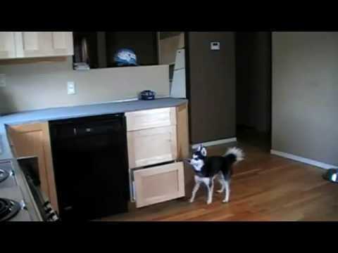 Ce chien Alaskan Klee Kai a vraiment une intelligence pratique pour atteindre les friandises sur le plan de travail de la cuisine. Ouvrir un tiroir avec sa gueule peut paraître assez facile mais, sous le regard de son copain qui ne va pas lui être d'une grande aide, il va faire des tests jusqu'à trouver la solution pour utiliser les tiroirs superposés comme un escalier. Un chien étonnant dans une vidéo captivante.