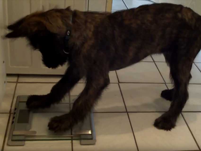 Beaucoup de personnes redoutent de se peser, et ce Berger Picard n'y manque pas. Intrigué par un pèse personne, il pose ses pattes dessus. Observant les changements de chiffres du cadran, il décide de les attraper avec ses pattes, ne comprenant pas d'où proviennent tous ces chiffres. C'est un peu la même réaction que chez les Hommes, non ?