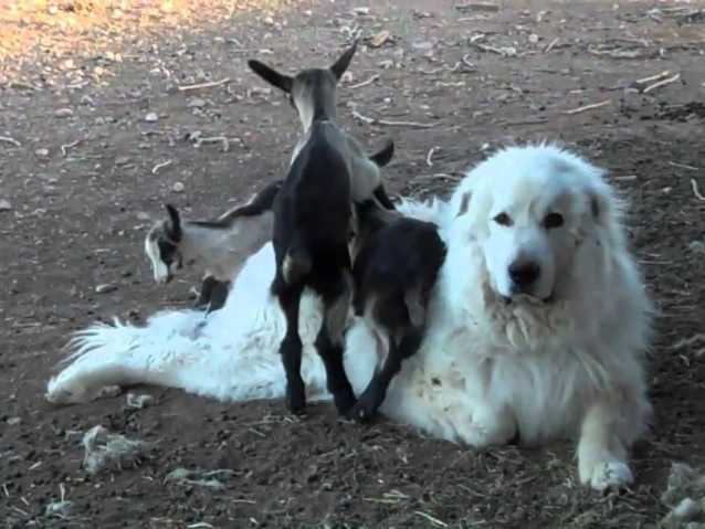 Cette vidéo attendrissante met en scène un Berger des Pyrénées et des chevreaux turbulents qui lui grimpent dessus. Les trois petits coquins s'amusent bien avec ce gros chien qui reste paisible malgré les massages vigoureux de ces six paires de sabots