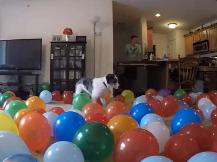 Sterling, un Border Collie Pyrénées, vient de célébrer son premier anniversaire. Pour marquer l’occasion, ses propriétaires lui ont préparé une belle surprise. Ils ont rempli le salon de ballons colorés, ce qui a enchanté Sterling ainsi que leur autre chien, qui s’amusent à sauter et courir joyeusement parmi eux. En guise de gâteau, ils ont préparé une gamelle garnie de pâté, surmontée d’une petite bougie. Le Border Collie Pyrénées est issu du croisement entre le Border Collie et le Chien de Montagne des Pyrénées.