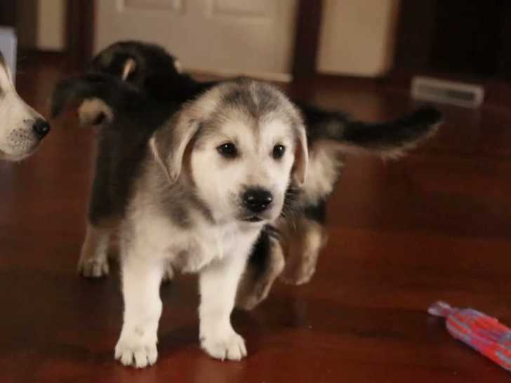 Ces petits chiots Goberian observent leur environnement avec attention. Leurs visages plus mignons les uns que les autres vont charmer à coup sûr leur future famille d'accueil. Issu du croisement entre le Golden Retriever et le Husky, le Goberian est un chien attachant, doux et enjoué. Ces chiots n'hésitent pas à se frotter les uns contre les autres pour montrer leur affection.
