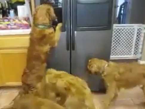 Le chien est connu pour être un animal intelligent, capable de comprendre un grand nombre de choses - au point de faire parfois des bêtises quand ils se retrouvent seuls. Ceux-ci ont parfaitement compris comment utiliser le distributeur de glaçons du frigo, et s'amusent avec à tour de rôle. Un moyen efficace pour leur permettre de se rafraîchir quand ils ont bien chaud !