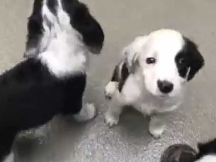 Ces adorables petits chiots Sprollie, au pelage noir et blanc, sont tout simplement irrésistibles. Malgré leur jeune âge, ils ne manifestent aucune crainte envers les humains, cherchant même quelques caresses. Ils se révèlent calmes et sont capables de rester au pied de leur maître pendant plusieurs minutes. Le Sprollie est issu du croisement entre le Springer Spaniel Anglais et le Border Collie.
