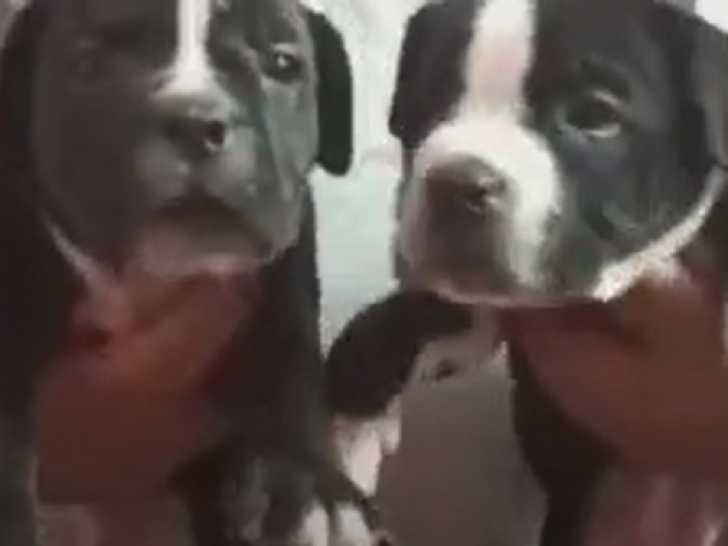 Ces deux adorables chiots American Pit Corso se montrent calmes et patients lorsqu'ils sont dans les bras de leur propriétaire, mais dévoilent leur maladresse et leur curiosité une fois posés au sol. Leur regard pourrait faire fondre bien des cœurs tant ils sont mignons. Ainsi, l'American Pit Corso résulte du croisement entre l'American Pit Bull Terrier et le Cane Corso et ces chiens se distinguent par leur grande affection et leur courage manifeste.