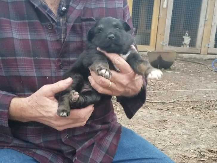 Ces adorables chiots German Australian Shepherd sont encore très jeunes. Ils vivent dans une ferme et n'ont pas peur d'être au milieu des poules. Leur propriétaire les prend tour à tour dans ses bras, leur offrant des câlins et des caresses. Le German Australian Shepherd est le fruit de la fusion entre le Berger Australien et le Berger Allemand.