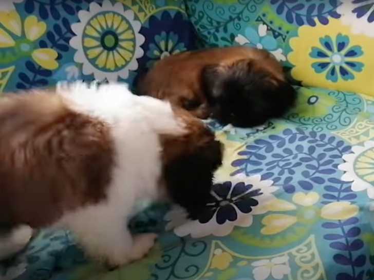 Ces deux petits chiens Cock-A-Tzu sont installés de manière très confortable dans le canapé de leurs maîtres. Très mignons, ils apprécient d'avoir de l'attention et aboient en regardant leurs propriétaires. Issu du croisement entre le Cocker Spaniel Américain et le Shih Tzu, le Cock-A-Tzu est un chien doux, calme et très sensible.