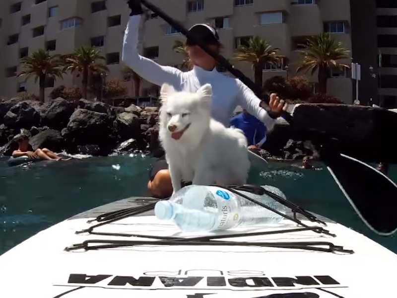 Lua, une Volpino Italiano, aime par dessus tout être sur l'eau. C'est accompagné de sa maîtresse que Lua parcours les eaux de Tenerife sur une planche de paddle. Une chose est sûr : ce chien adore le cani-paddle. À peine la planche posée sur l'eau que Lua est déjà prête à faire du paddle.