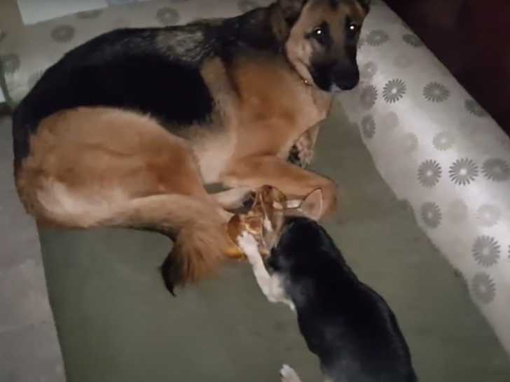 Installé paisiblement sur le canapé, un Berger Allemand déguste un os… mais pas tout seul. À ses côtés, un petit Chihuahua attend tranquillement son tour. Le grand chien, plein de douceur, accepte de partager et laisse son compagnon grignoter à son tour. Ce moment tendre met en lumière la patience et la complicité qui peuvent exister entre chiens, même lorsque leur taille diffère énormément. En somme, une scène adorable de générosité et de respect mutuel.