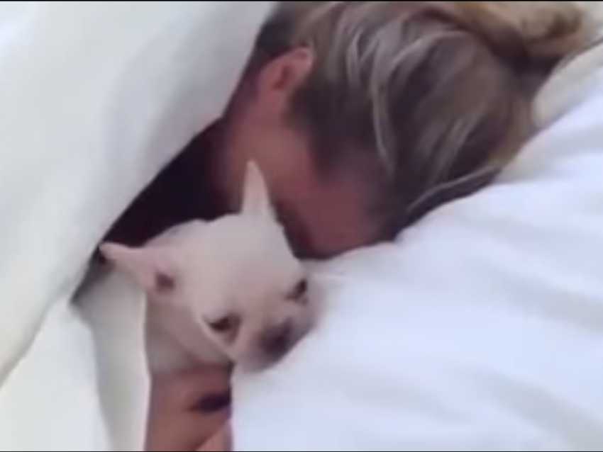 Cette vidéo montre la réaction d'une femme réveillée par surprise, à qui l'on présente un chiot de race Bouledogue français. Elle ne s'attendait visiblement pas à un tel cadeau de la part de son compagnon, alors qu'elle vient à peine d'ouvrir les yeux. Ce petit chien arrive dans sa vie comme un événement inattendu.