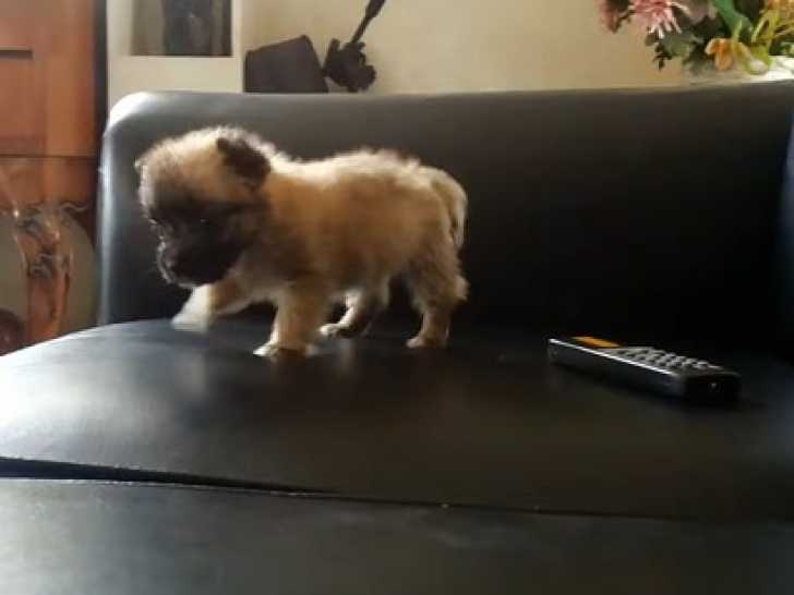 Junno, un Jack-Tzu, est le nouveau membre de cette famille. Ce chiot est adorable, il est tellement jeune qu'il semble petit à côté de la télécommande posée sur le canapé. Le Jack-Tzu, résultat du croisement entre le Jack Russell et le Shih Tzu, est un chien affectueux, sociable et joueur.