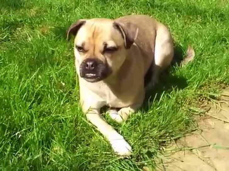 Ce charmant Jug, une race hybride issue du croisement entre un Jack Russel et un Carlin, trouve un moment de paix et de détente dans son jardin, baigné par les doux rayons de soleil. En effet, il a hérité du dynamisme du Jack Russel et de la douceur du Carlin. Il apprécie donc grandement la tranquillité près de son maitre, et la chaleur sur son pelage.