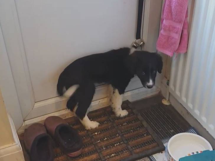 Cette vidéo montre un chiot Sprollie capable de signaler son besoin de sortir pour se soulager dans le jardin de son propriétaire. Pour cela, une sonnette a été installée près de la porte d’entrée. En quelques jours d’apprentissage, le chiot a compris qu’il pouvait la faire sonner pour demander à sortir, évitant ainsi les accidents à l’intérieur de la maison. Le Sprollie est issu d’un croisement entre un Springer Spaniel et un Border Collie.
