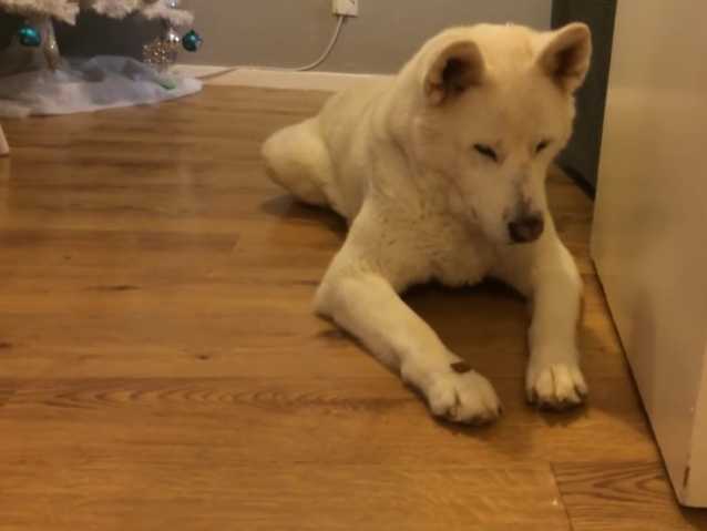 À la fin de la vidéo, en guise de récompense le Jindo savoure sa friandise bien méritée.