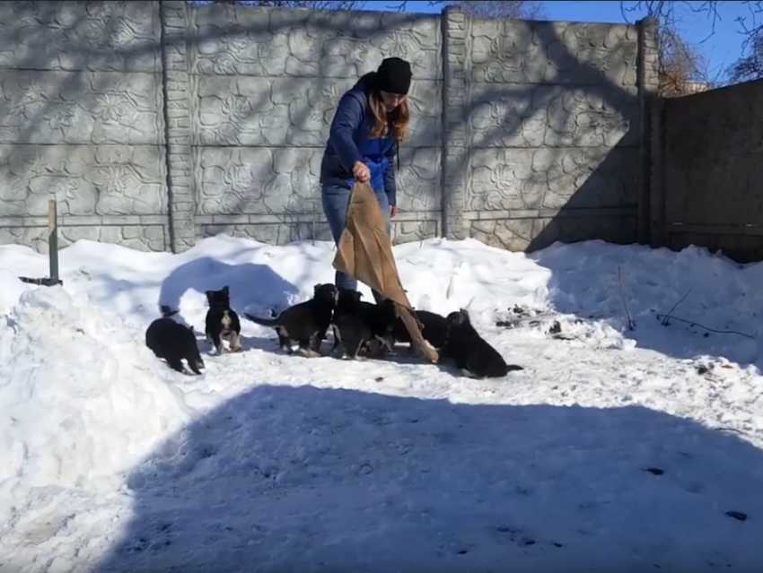Un groupe de chiots de berger d'Europe de l'Est, ou Vostotchno-Evropeyskaya Ovtcharka, est soumis à un exercice d'obéissance mené par leur maître. L'objectif est de suivre ce dernier, muni d'un long bout de tissu, partout où il va. Durant toute la vidéo, l'ensemble du groupe garde son attention sur le maître et son tissu, sans qu'aucun des membres ne s'éparpille à d'autres activités.