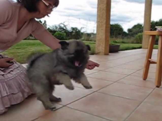Dans cette vidéo, nous découvrons une maîtresse éduquer son chiot Keeshond à l'aide d'un clicker training.