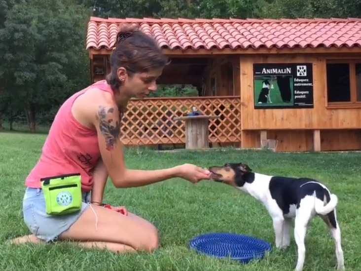 Cette vidéo présente comment sa maîtresse utiliser le clicker training pour entraîner Padmé, un chiot de 4 mois, à marcher sur une surface inconfortable.