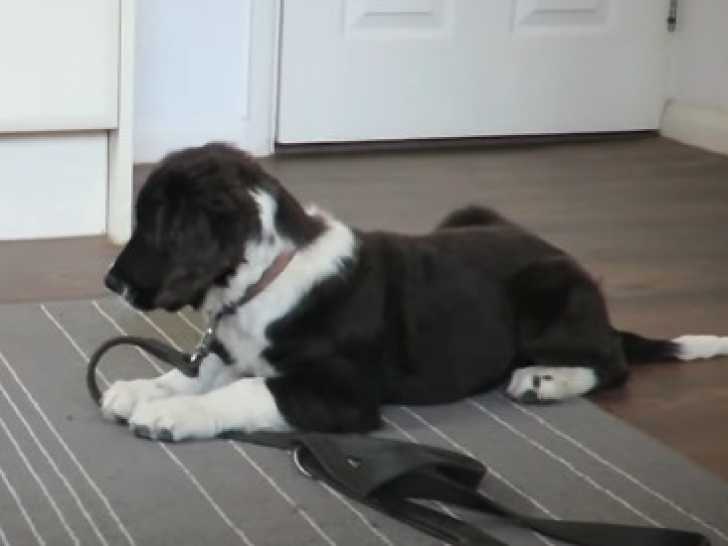 Lucky, un jeune Sprollie, âgé de 5 semaines, est issu du croisement entre un Springer Spaniel Anglais et un Border Collie. Son maître le forme à de nombreux exercices, tels que rester au pied, être en présence d’autres chiens, s’asseoir, ou encore se balader en laisse en ville. Lucky se montre très attachant et obéissant.