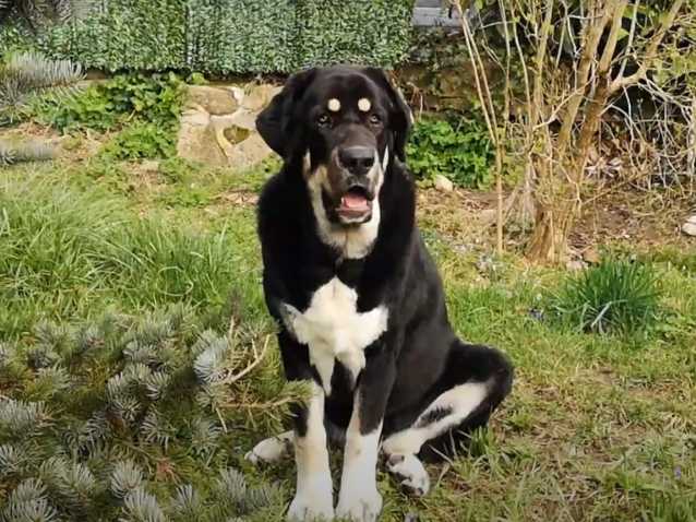 Voici un Mâtin Espagnol qui est imposant malgré son jeune âge. Il est obéissant, sociable et affectueux avec ses proches comme le montre cette scène. En effet, il obéit aux instructions qui sont données par sa maîtresse et il tend, par exemple, la patte avec délicatesse lorsqu’elle le lui demande.
