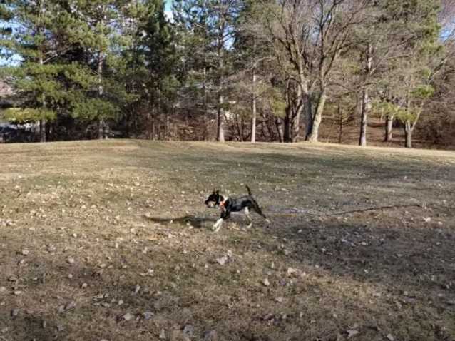 Ainsi, c’est avec une grande agilité que ce Rat Terrier part en courant à toute vitesse pour récupérer l’objet à terre et le ramener tout aussi vite aux pieds de son maître.