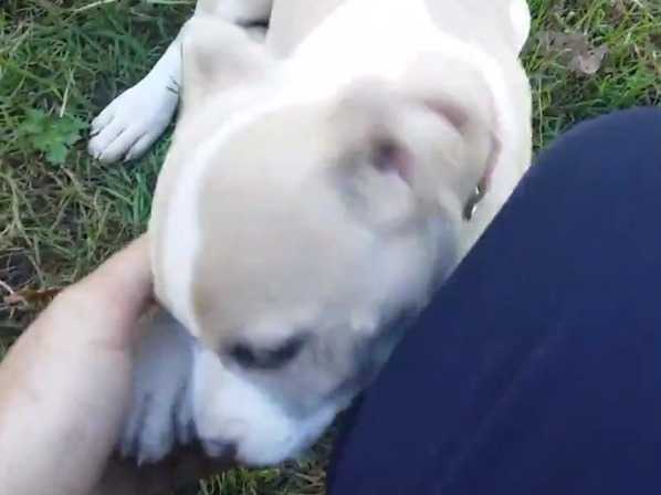 Voici un exemple des premiers savoir-faire que l'on peut enseigner à un jeune American Staff. Cette chienne de quelques mois commence à assimiler les ordres simples comme "assis", "pas bouger", "au pied"... Le but n'est pas de contrôler le chien, mais de lui permettre de savoir comment se comporter en toutes circonstances, à condition bien sûr que la confiance soit bien installée entre lui et son maître.