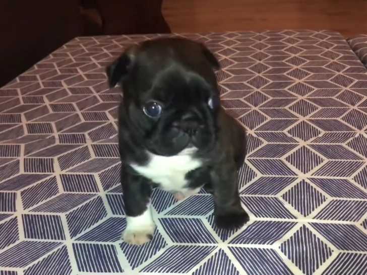 Kiwi, un adorable chiot âgé de seulement 2 semaines, suscite déjà beaucoup d'attention au sein de sa famille. Né du croisement entre un Carlin et un Boston Terrier, Kiwi est un jeune Bugg, une race reconnue pour sa grande affection et le lien très étroit qu'il partage avec ses maîtres. Il explore son environnement et essaye de faire ses premiers pas avec le soutien de sa famille, mais également de ses parents.