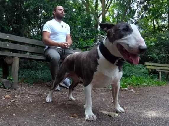 Bien que de nombreuses personnes entretiennent une certaine méfiance, voire une peur irraisonnée, de ce chien, le Bull Terrier est en réalité particulièrement amical avec tous les humains, même inconnus. Très attaché à son maître ou sa famille, il peut se révéler pot-de-colle et exigeant en caresses et autres signes d'amitié.