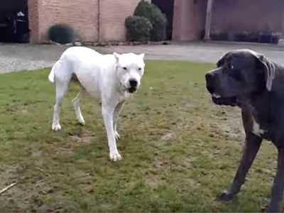 Un cane corso et un dogue argentin, deux chiens d'arrêt redoutables, sont en plein conflit, en pleine lutte. Ils se bagarrent, se sautent dessus. Leur but ? Montrer qui est le maître. Qui gagnera ? Qui sera le grand gagnant de cette lutte acharnée ? Pour le savoir, il suffit juste de regarder la vidéo.