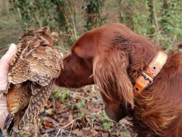 Cette vidéo montre un Setter Irlandais qui est en train de chasser la bécasse dans un environnement boisé. Et force est de constater qu'il est vraiment passionné par cette activité.