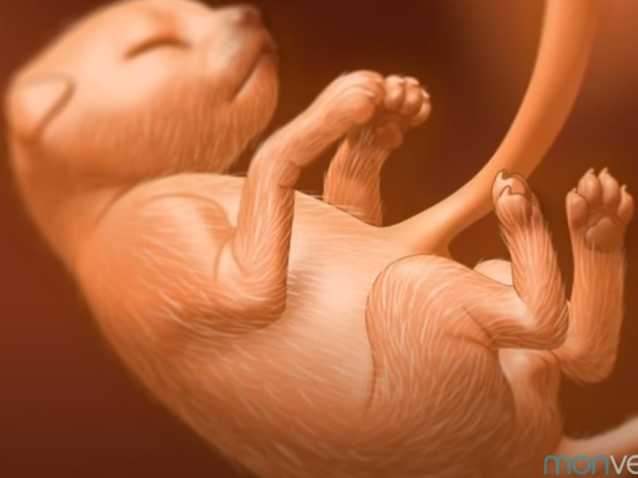 Cette vidéo présente les stades successifs du développement d'un chiot dans le ventre de sa mère, depuis la fécondation des ovules par les spermatozoïdes jusqu'à la préparation de la mise bas. Chez le chien, la gestation est bien plus rapide que chez l'humain, avec une durée d'environ 63 jours.