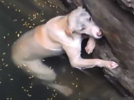 Au bord de l'épuisement, ce chien tombé au fond d'un puits lutte désespérément pour garder la tête hors de l'eau. Les villageois s'organisent alors et prennent tous les risques pour le tirer de là. L'animal est extrait de sa prison sain et sauf.