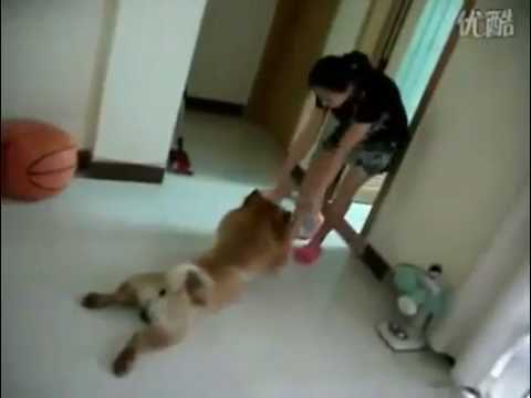 Ce chow-chow n'a pas du tout envie de se faire une beauté. Alors, à chaque fois que sa maîtresse le rapproche de la salle de bains, il fait le "mort" tant qu'elle le tient et, dès qu'elle le lâche, il se sauve. La jeune femme, persévérante, va tout de même arriver à ses fins. Cette vidéo nous montre un chien drôle mais surtout rusé
