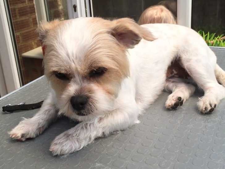 Lulu, un Shi Chi, est allongé sur une table après une séance de toilettage. Avec ses poils fraîchement lavés et coupés, il semble détendu et satisfait. Bien que ce soit l'une de ses premières visites chez le toiletteur, il s'est déjà habitué et n'a plus peur. Issu du croisement entre un Shih Tzu et un Chihuahua, Lulu est le compagnon idéal pour ceux qui recherchent un animal de compagnie affectueux et calme.