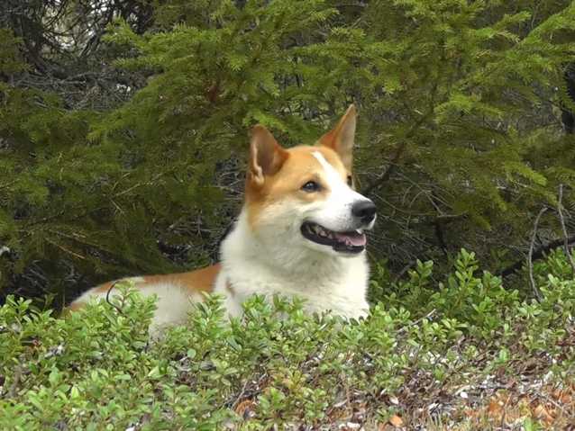 Bien planqué à l’affût derrière des buissons, puis dévalant les bois à grande allure, le Spitz de Norrbotten se fait un plaisir d’accompagner son maître à la chasse.