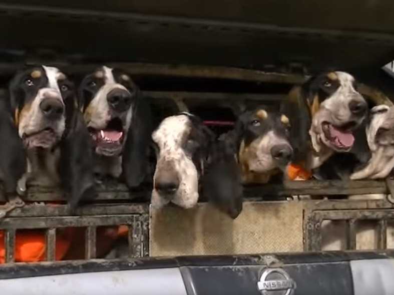 Pas de doute, il y a des sangliers cachés dans les fourrés. Les Gascons Saintongeois sont sur la ligne de départ. Les chasseurs les lâchent et c'est parti ! On entend les chiens de chasse partis dénicher le sanglier et le grognement de ce dernier. Un premier cochon sauvage attrapé et c'est la débâcle des autres sangliers qui sont poursuivis par ces canidés de chasse infatigables. Ils encerclent une autre proie qui ne peut plus s'échapper.