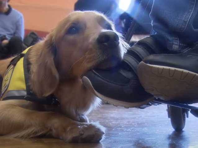 L'association suisse Le Copain éduque des chiens d'assistance à destination des personnes handicapées qui en ont besoin. Ce jour-là, à Riddes, dans le canton du Valais, les récipiendaires se voient remettre leur futur compagnon de vie par les familles d'accueil qui ont élevé leur chien durant sa prime jeunesse et qui l'ont préparé à son métier en le socialisant au mieux.