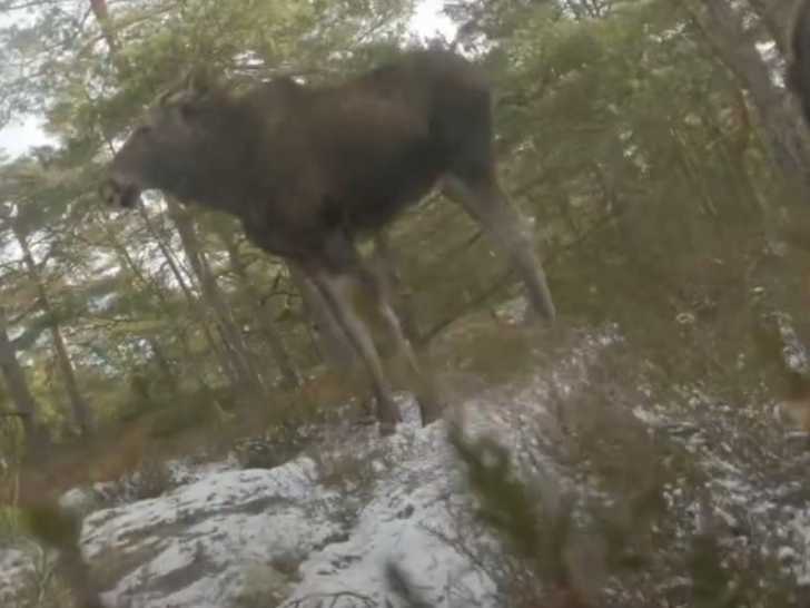 On y voit un chien d’un an poursuivant un élan et ses trois petits, vu du point de vue du chien grâce à une GoPro. La vidéo offre une immersion totale dans l’aventure, montrant l’énergie, l’agilité et la curiosité du chien en pleine action.