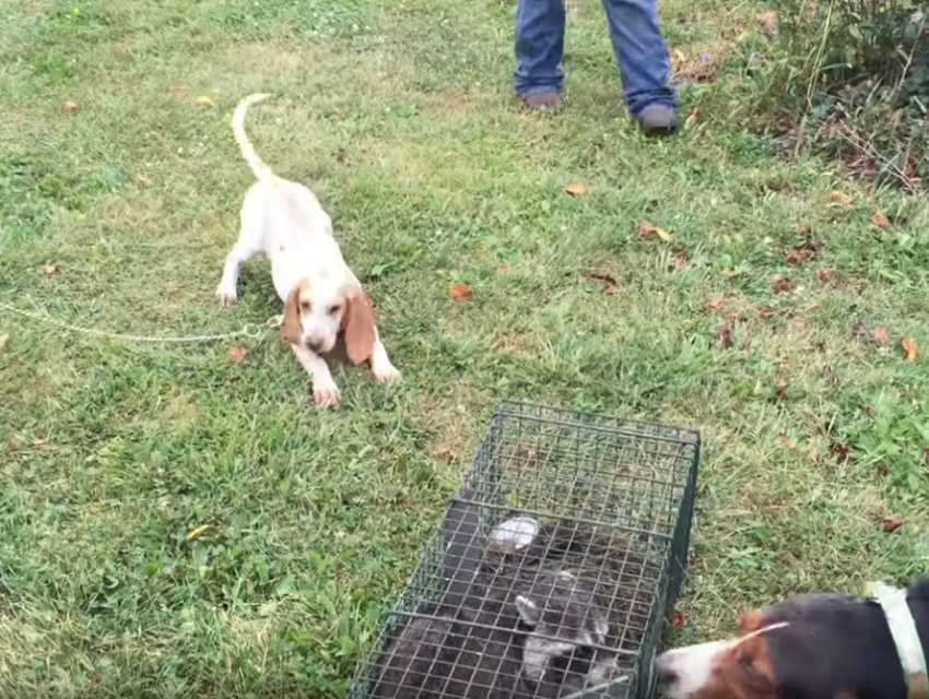 Pour devenir de bons chiens de chasse, le maître doit faire travailler son American English Coonhound dès son plus jeune âge pour l'habituer à la traque. D'abord accompagné d'un chien expérimenté, puis livré à lui-même, il apprend comment se comporter lors d'une battue. Cette vidéo montre un exercice simple pour l'habituer aux réflexes à avoir lorsqu'un gibier est détecté.