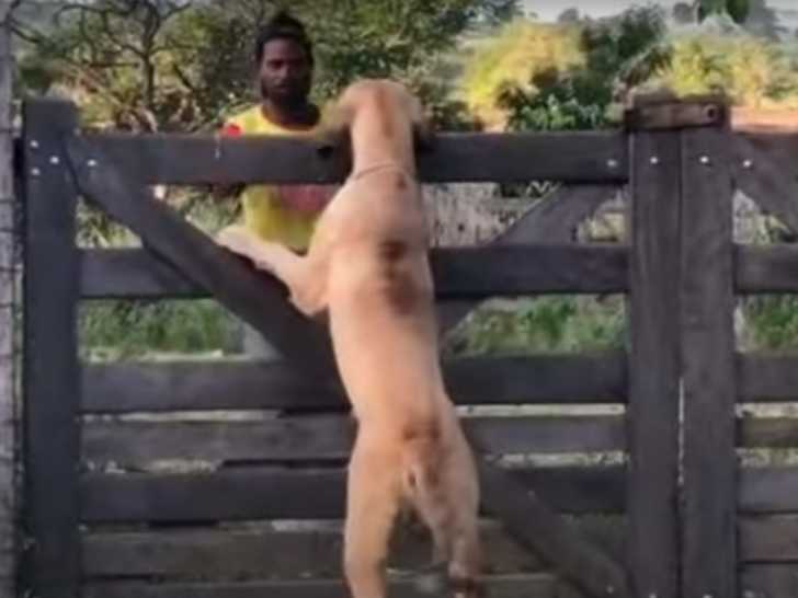 Cette vidéo montre un Fila Brasileiro en train de protéger la porte d’entrée de sa maison avec une grande vigilance. Le chien surveille attentivement le portail et repousse avec détermination toute tentative d’intrusion, démontrant ses qualités naturelles de gardien. Son comportement illustre parfaitement l’instinct protecteur et la loyauté de cette race envers sa famille et son territoire. Une fois sa mission accomplie, le Fila Brasileiro se détend et se repose paisiblement dans un bac d’eau, profitant de ce moment pour se rafraîchir et récupérer après sa période de surveillance active.