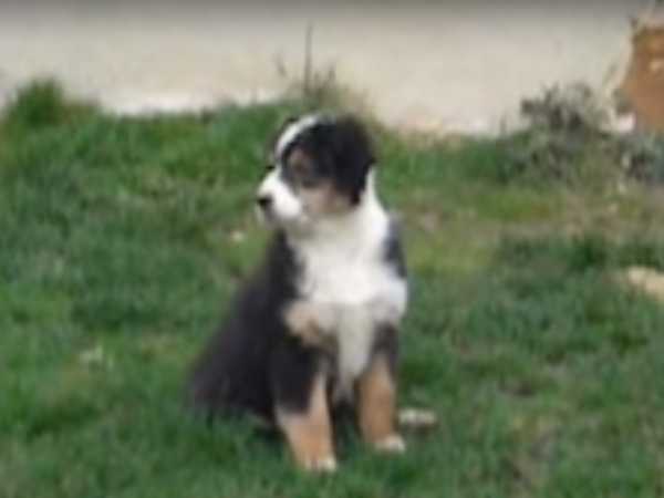 Taylor, un Berger Australien femelle noir de 2 mois et demi, voit des chiens aboyer et se demande ce qu'il se passe. Ce chien est en pleine interrogation, que doit-elle faire ? Elle semble être indifférente aux aboiements des autres chiens, à moins que ça ne soit de la peur ?