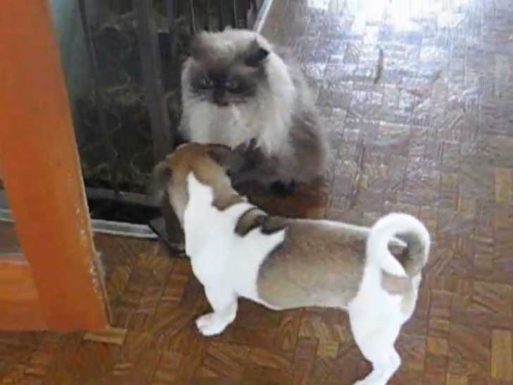 cohabitation chien de 5 ans et chat de 13 ansBonjours je viens d adopter un chien de 5 ans et nous une chatte de 13 ans,le chien est venu voir le chat...
