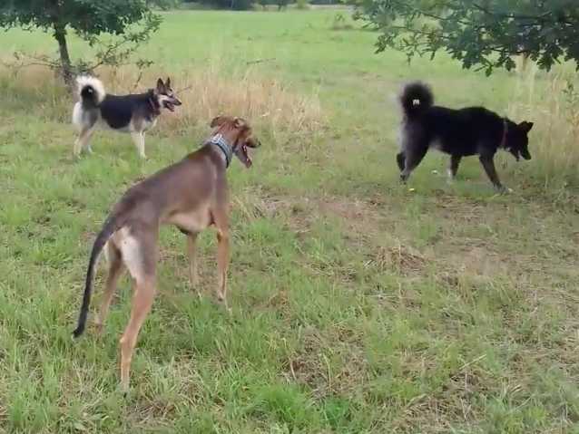 Le Chart Polski est un chien qui adore les jeux ayant un lien avec la chasse, où il faut partir à la poursuite ou la recherche de quelque chose. Comme dans cette vidéo, où il joue et court, en plein-air, avec deux autres chiens.