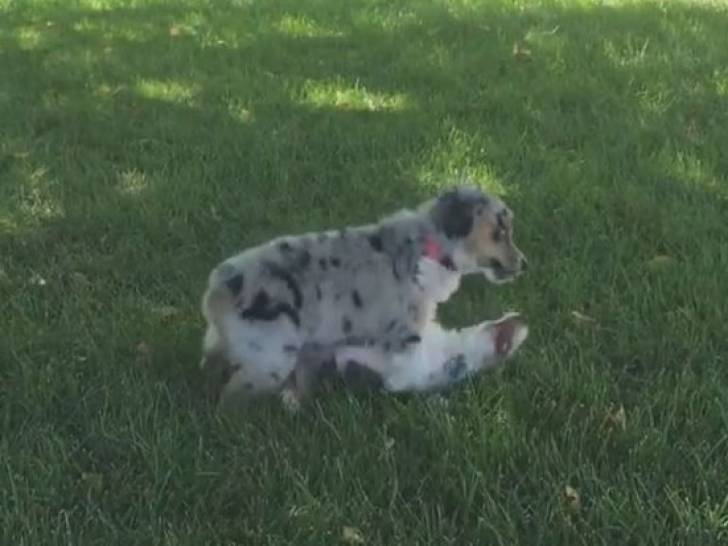 Dans cette vidéo, un chien Aussiepom joue dans l’herbe avec un Berger Australien Miniature, aussi appelé Mini Aussie. Les deux chiens se poursuivent, se mordillent doucement et se font tomber à tour de rôle, dans ce qui ressemble à une bagarre amicale typique du jeu canin. Issu du croisement entre le Loulou de Poméranie et le Berger Australien, l’Aussiepom est un chien qui semble apprécier les interactions et les moments de jeu avec ses congénères.