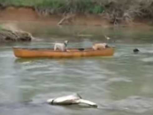 Alors que deux chiens se retrouvent embarqués malgré eux sur un canoë qui dérive au milieu d'une rivière, la situation semble compromise. Mais un troisième chien, faisant preuve d’un incroyable courage, n’hésite pas à plonger dans l’eau pour leur venir en aide. Bravant le courant, il nage avec détermination jusqu’à l’embarcation et parvient à la diriger vers la berge. Grâce à son intervention héroïque, ses deux compagnons peuvent regagner la terre ferme sains et saufs.
