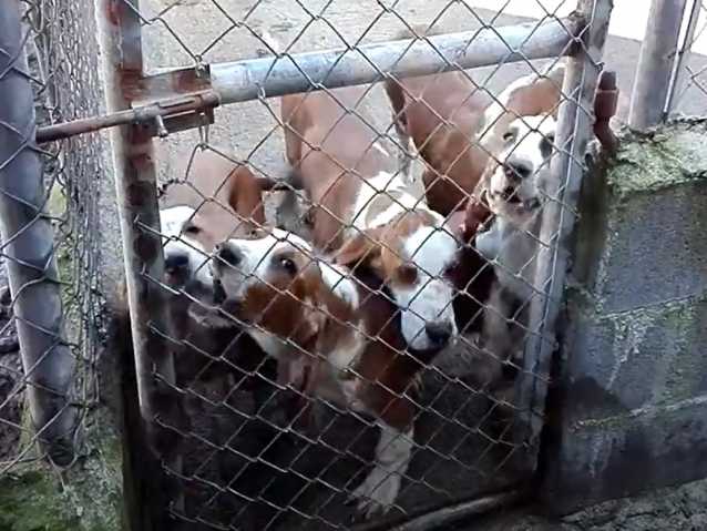 Devant la porte de leur enclos en extérieur, cinq Chiens Courants Espagnols attendent avec impatience le moment de partir chasser avec leur maître. En raison de leur nature de chiens de chasse, les individus de cette espèce peuvent s’avérer assez bruyants et sont donc bien plus adaptés à la vie dans les régions rurales.
