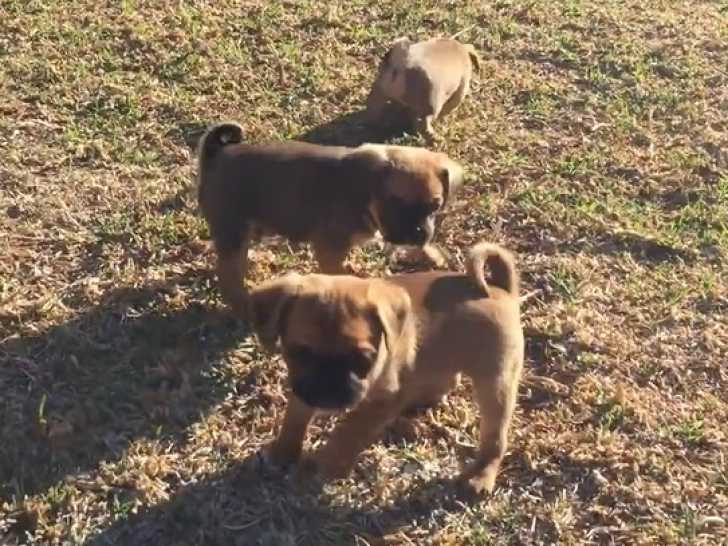 Ces petits chiots Pugalier sont tous plus mignons les uns que les autres. Ils apprécient les jeux, les courses dans l'herbe, et taquiner leur mère avec tendresse. Le Pugalier est un croisement entre le Carlin et le Cavalier King Charles Spaniel. Ainsi, c'est un très bon compagnon, sociable et affectueux auprès de toute la famille.