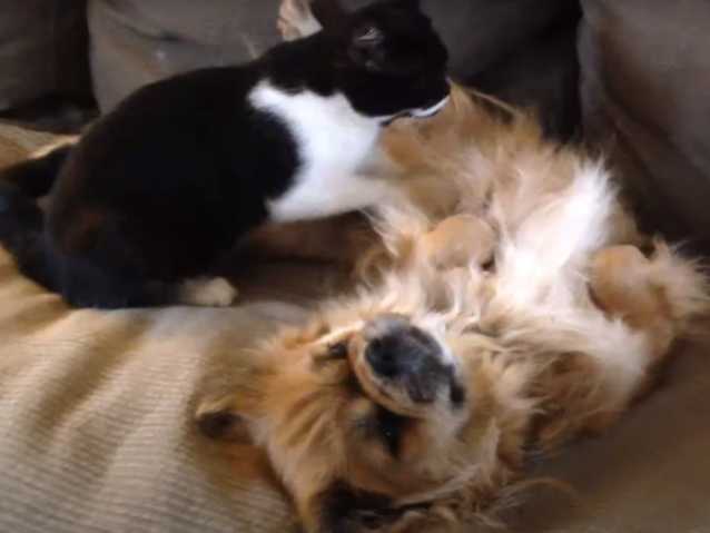 Voici un chien et un chat qui sont vraiment très complices et il ne fait aucun doute qu’ils sont comme frère et soeur. En effet, cet Epagneul Tibétain et ce jeune félin ne se quittent quasiment jamais et passent tout leur quotidien ensemble. C’est drôle et amusant à voir car une telle amitié est peu commune entre un chien et un chat.