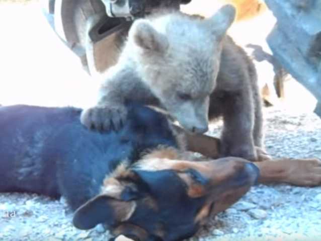 En Slovénie, un ourson orphelin de trois mois et demi a été recueilli par une famille. Le chien l'a adopté et ils sont devenus les meilleurs amis du monde. Les autorités vétérinaires pourraient toutefois retirer Medo de son foyer pour le placer dans un refuge.